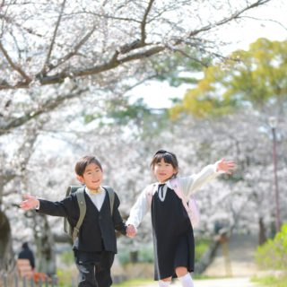 夙川河川敷緑地(夙川公園)で入学記念写真撮影!